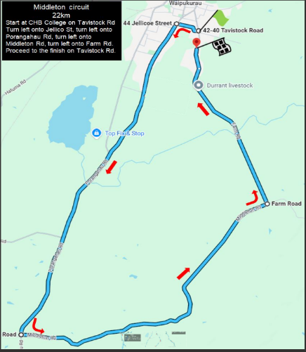 Proceed to the finish on Tavistock Road 22.0km